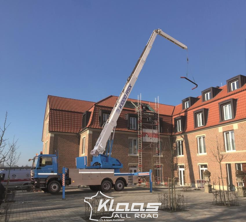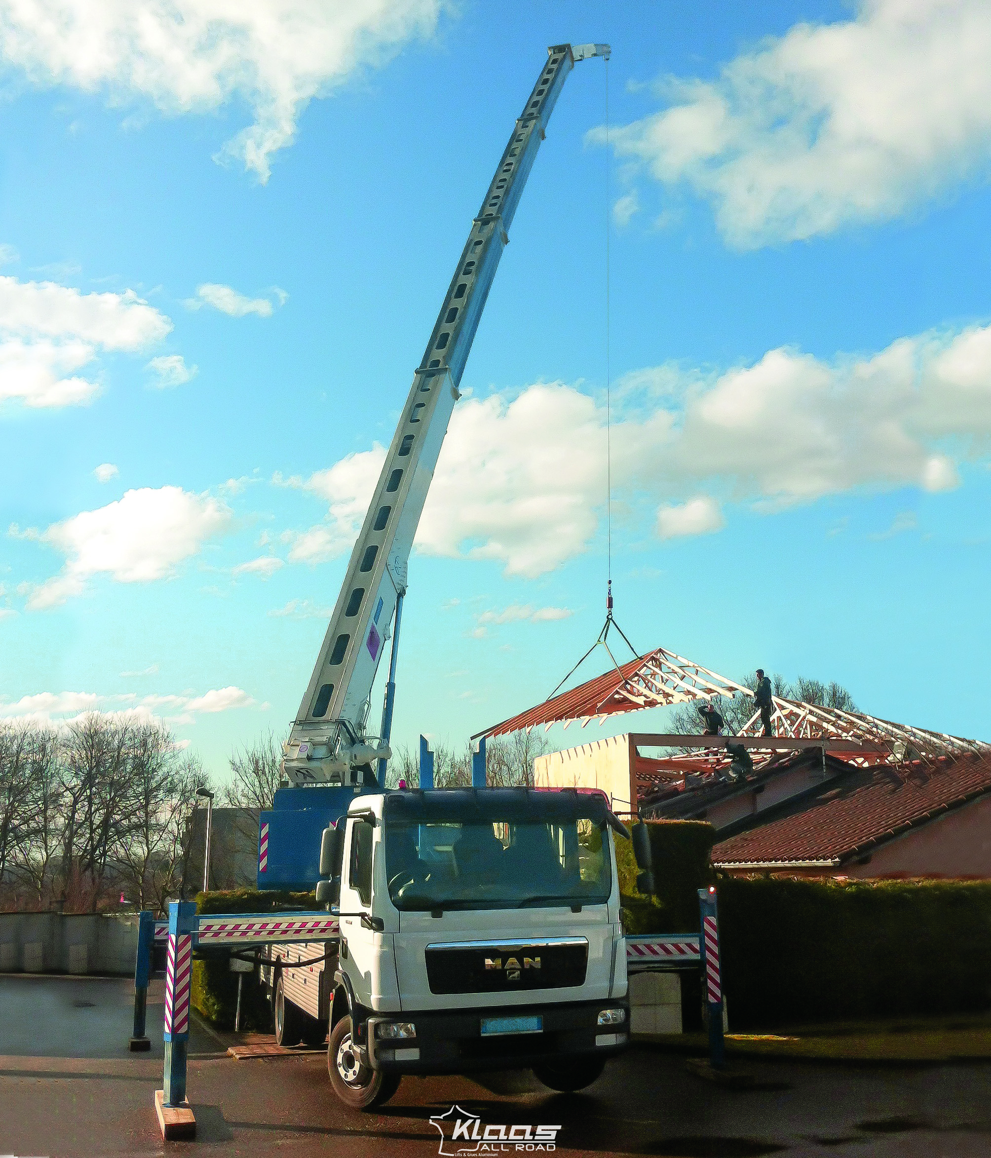 Montée sur un châssis de camion 22 tonnes, le K1003 est la grue sur camion Klaas la plus puissante.