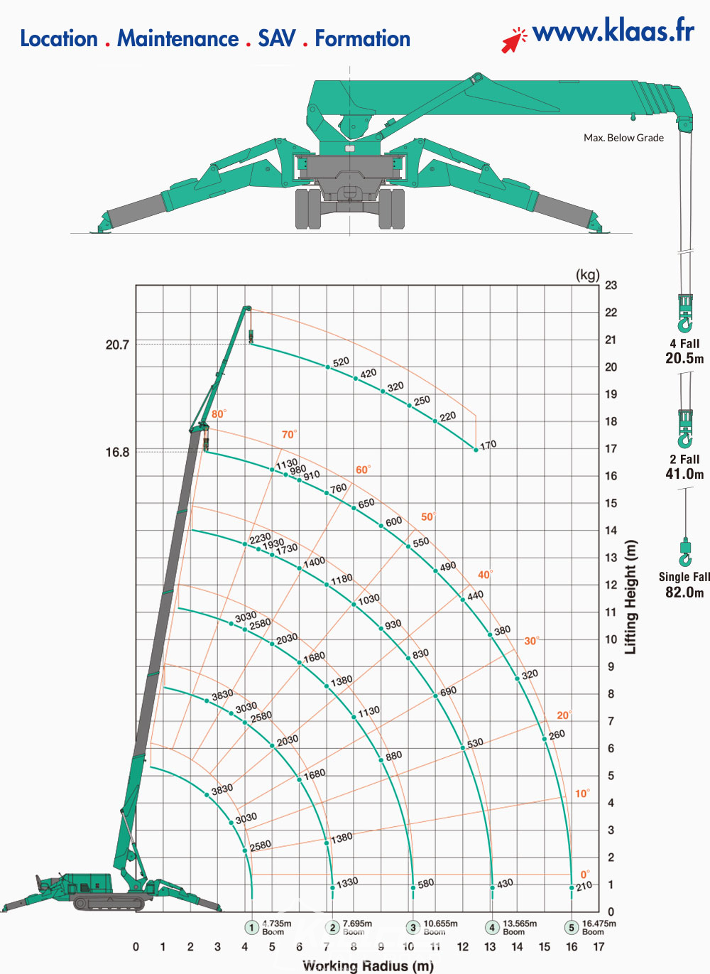 Location mini grue électrique Maeda MC405 partout en France avec les service de livraison sur chantier disponible dans tout le réseau Klaas by All Road.