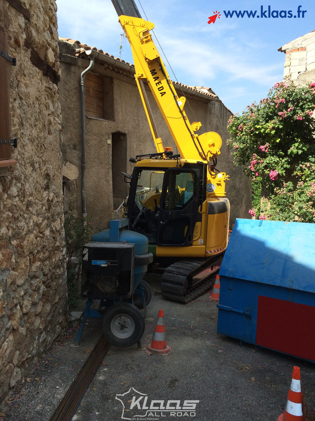 Location mini grue sur chenilles Maeda CC985 avec livraison sur chantier.