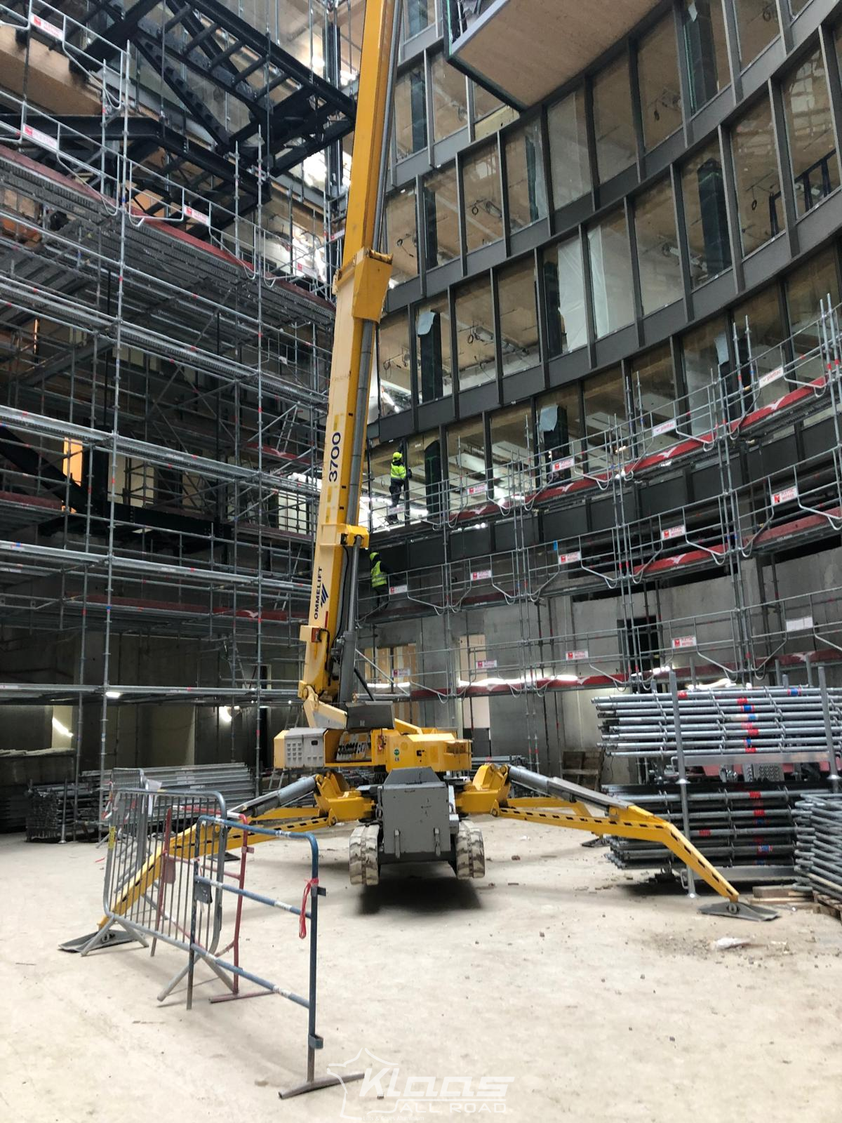 Grâce à un déport horizontal de 13,7 mètres et un jib de 2,7 mètres, cette nacelle araignée permet d’atteindre des zones difficiles d’accès avec une grande précision. Elle est équipée d’une motorisation biénergie (thermique + électrique), ce qui la rend aussi efficace en intérieur qu’en extérieur.
