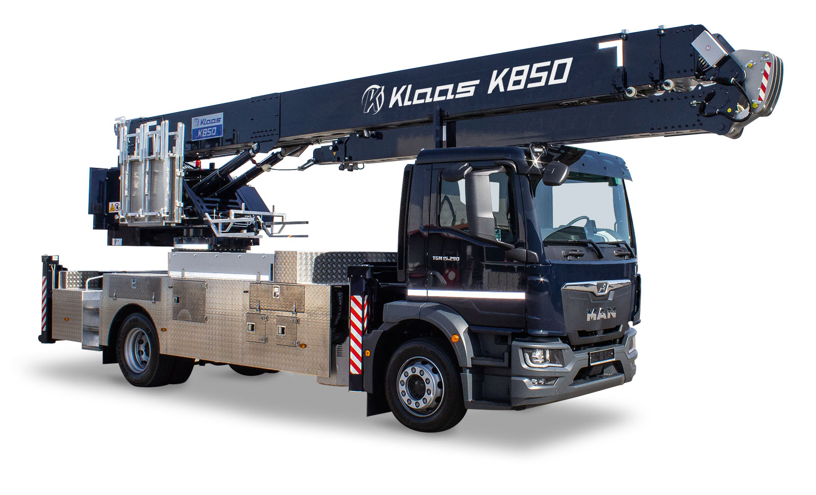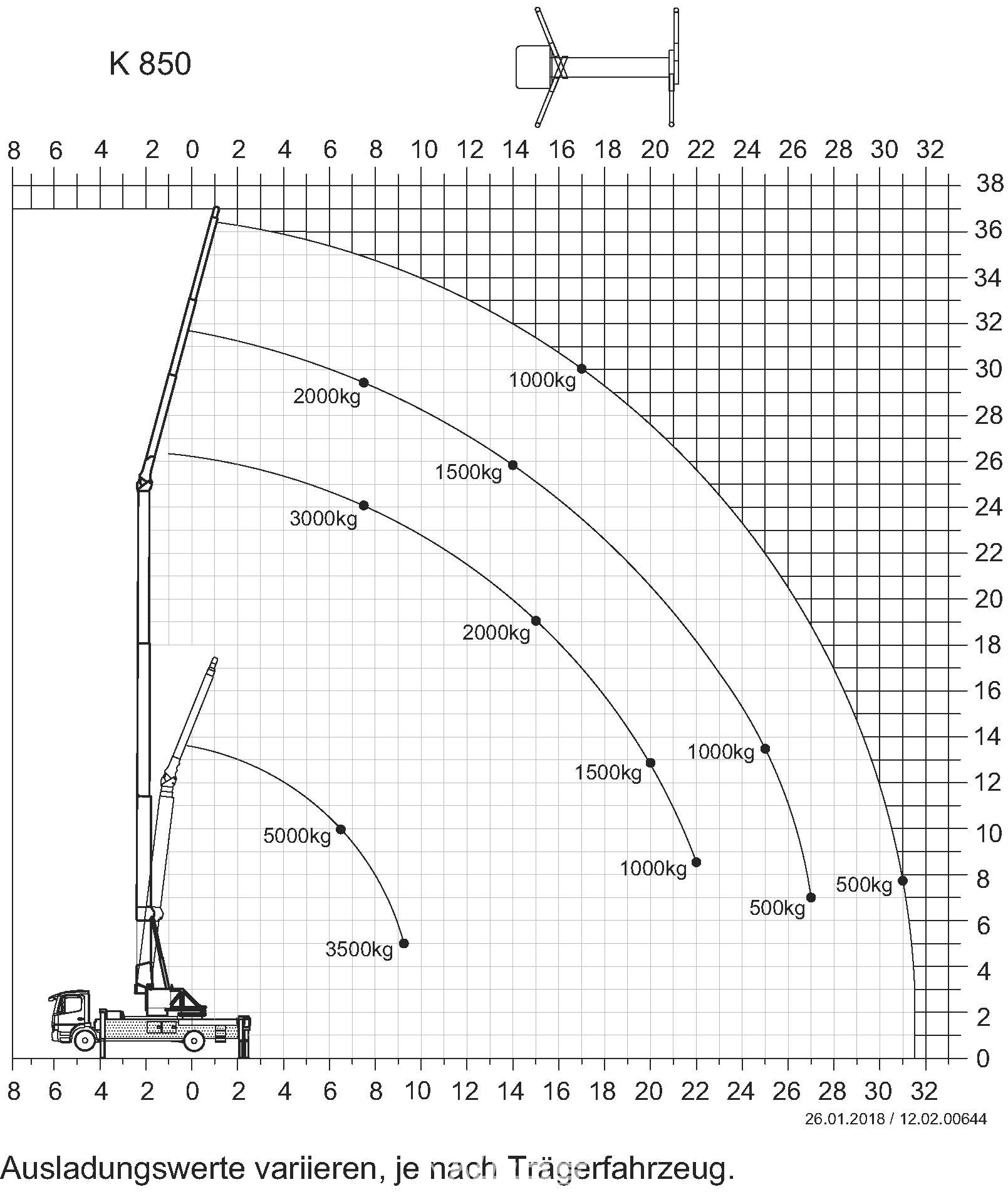 Avec une hauteur maximale sous crochet de près de 37m et une capacité de charge maximale de 5 tonnes, le camion K850 répond presque à toutes les exigeances que les artisans du toit recherchent.