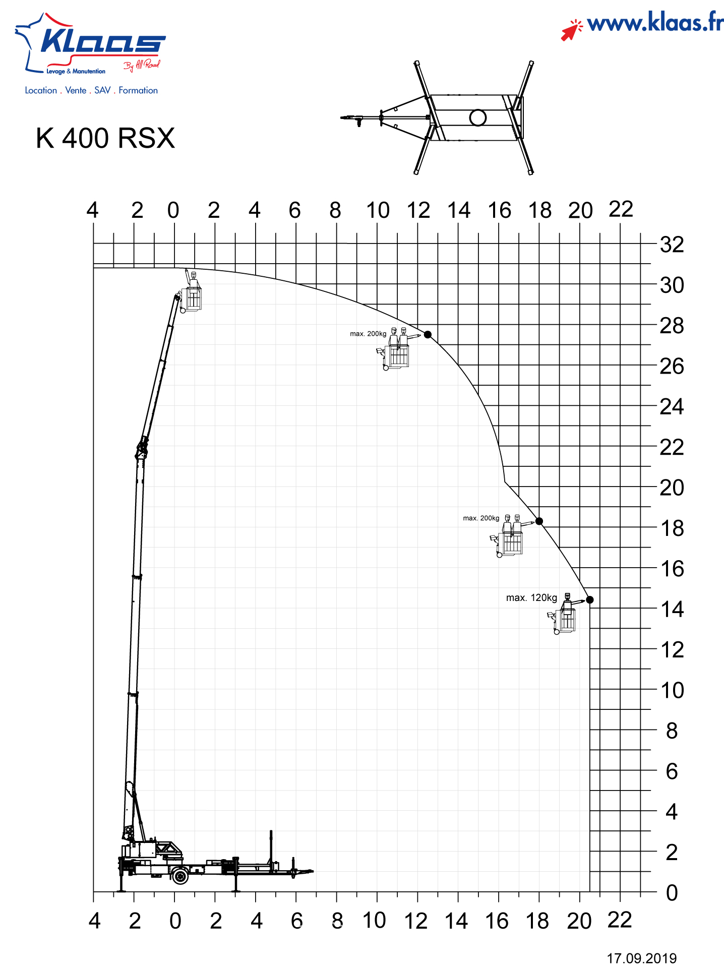 Avec une capacité de levage de 1 600 kg, la grue sur remorque Klaas K400 est la plus puissante grue sur remorque de la gamme.