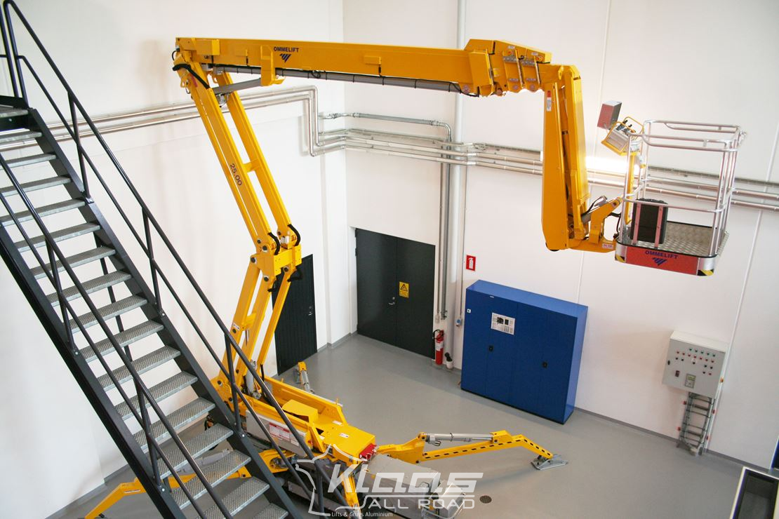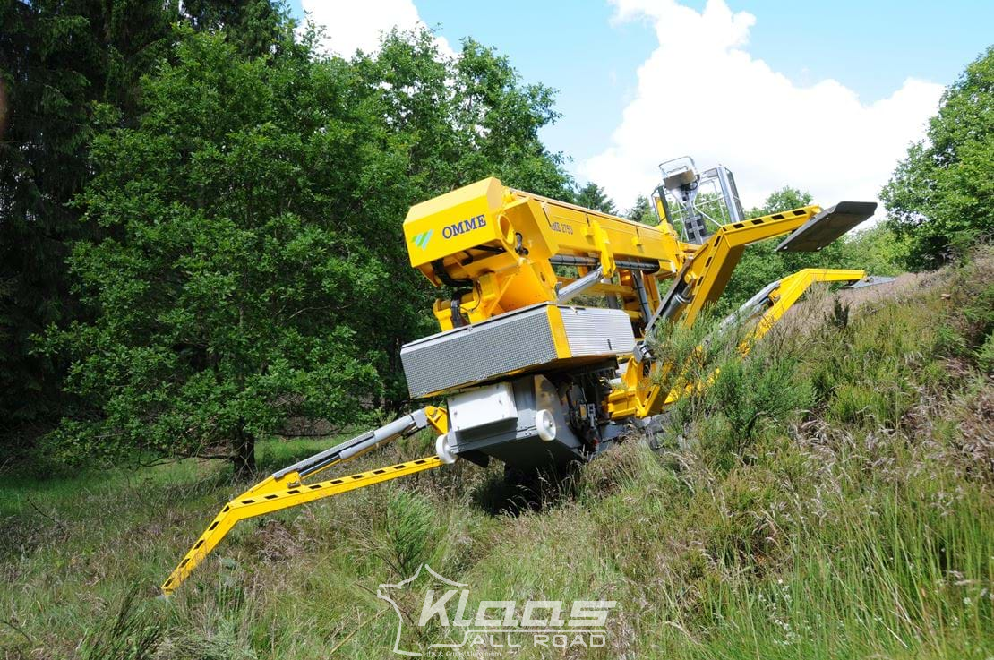 Le nacelle araignée articulée Ommelift 25.00 RXJ a une hauteur de travail maximale de 25 m et une portée maximale de 12,8 m.